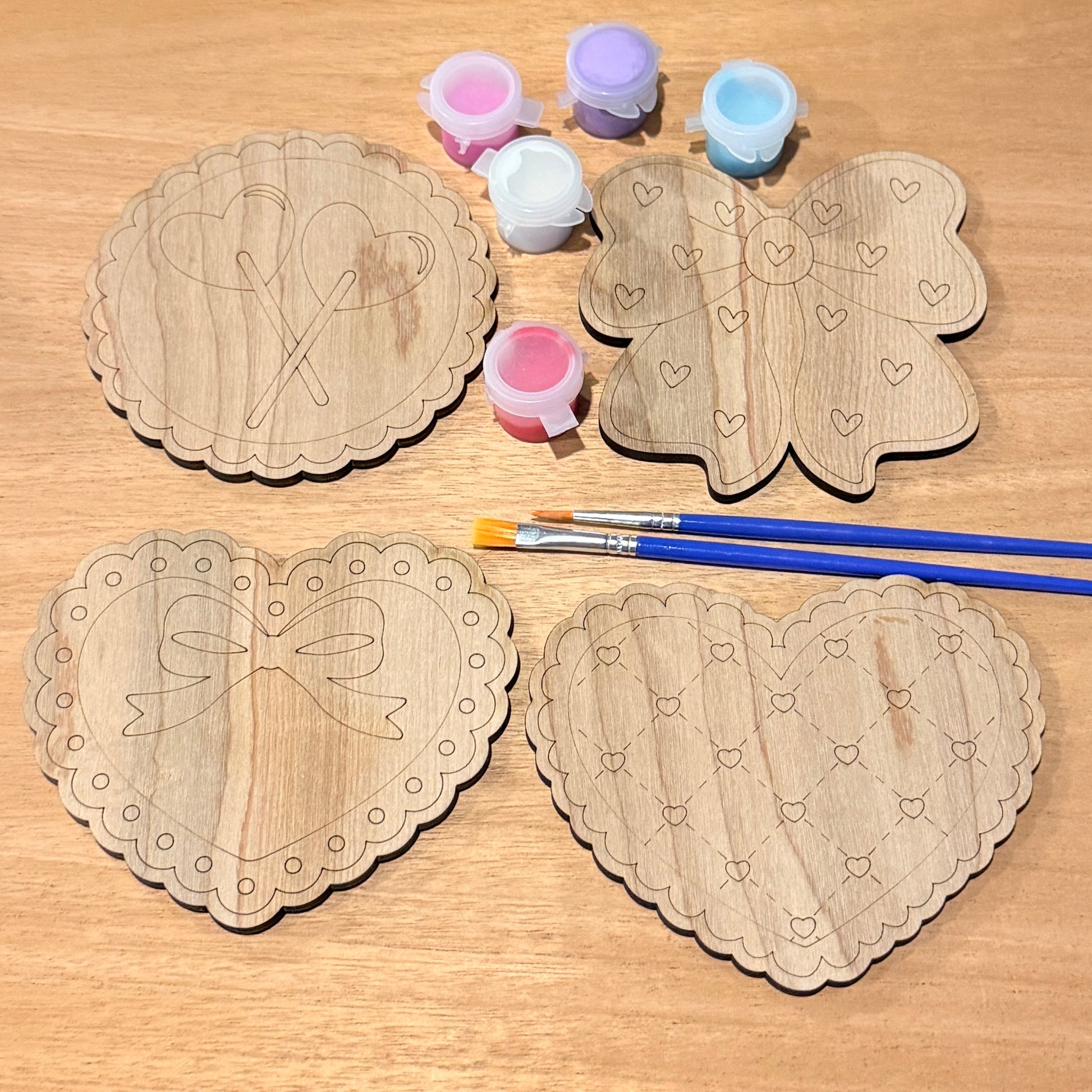 The Scalloped Bows paint kit is designed for children, fostering creativity and fine motor skills. It includes a variety of colors and tools optimized for easy handling by young users. Engaging with this kit can enhance cognitive development and artistic expression through the medium of painting.